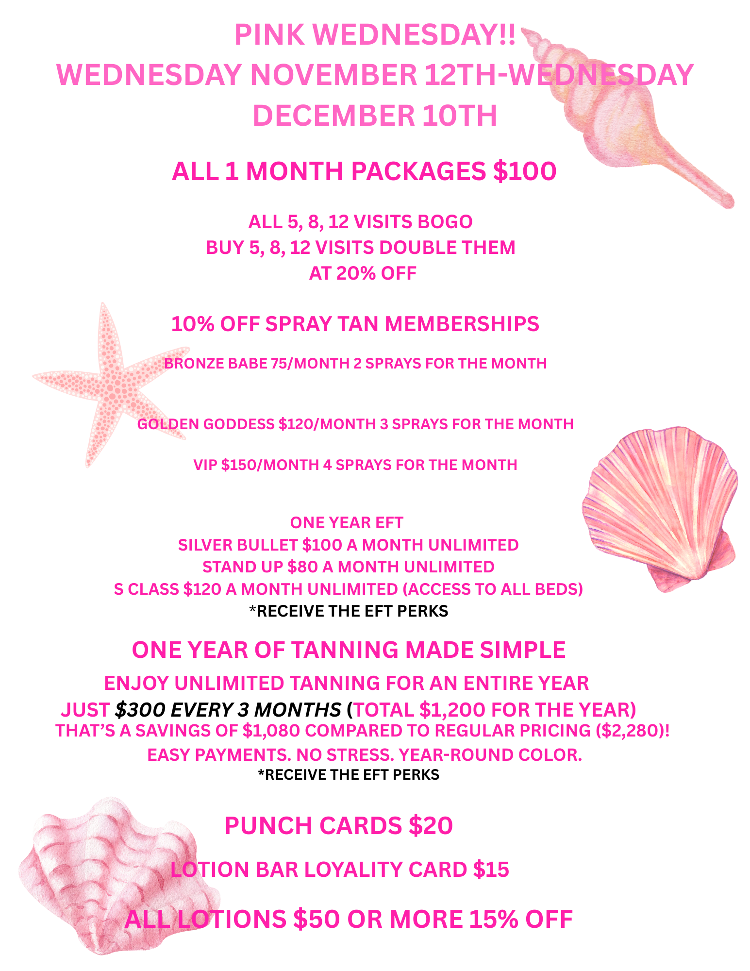 *LAST TAN IS ALWAYS 30 MINUTES BEFORE CLOSE